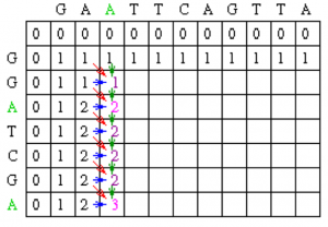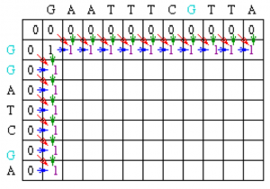 The following is an example of global sequence alignment using Needleman/Wunsch techniques. For this example, the two sequences to be globally aligned are